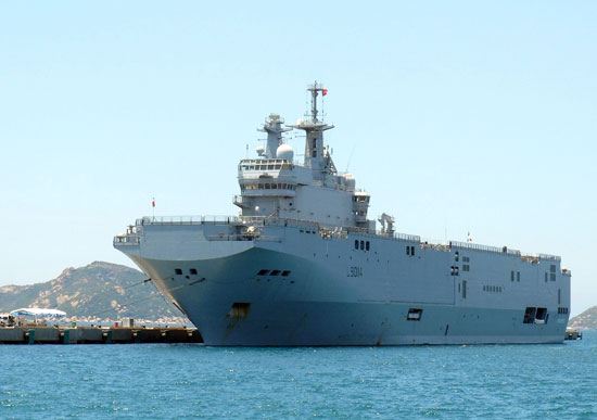 Tàu Tonnerre của Hải quân Pháp cập Cảng quốc tế Cam Ranh (Khánh Hòa). Ảnh: Nguyên Lý-TTXVN