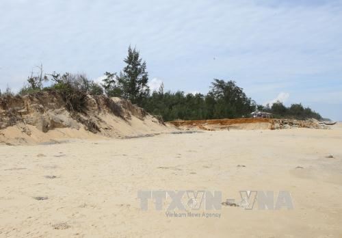 Đê biển tại xã Vinh Hải, huyện Phú Lộc bị sạt lở nghiêm trọng. (Ảnh: Hồ Cầu/TTXVN)